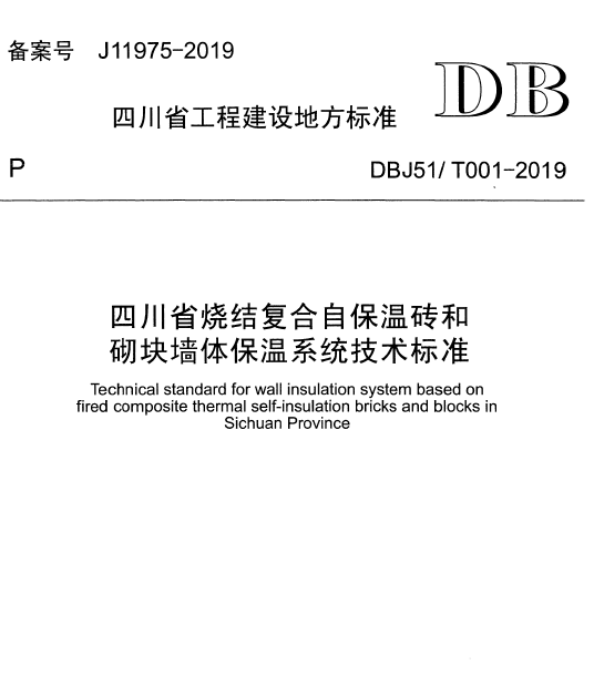 DBJ51T 001-2019 四川省烧结复合自保温砖和砌块墙体保温系统技术标准
