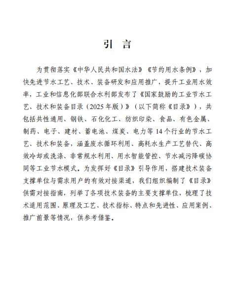 《国家鼓励的工业节水工艺、技术和装备目录(2025年版)》