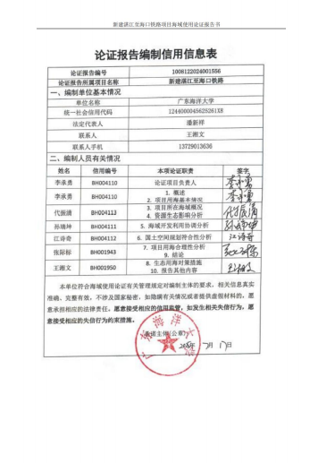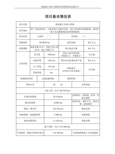 新建湛江至海口铁路项目海域使用论证报告书(公示稿)