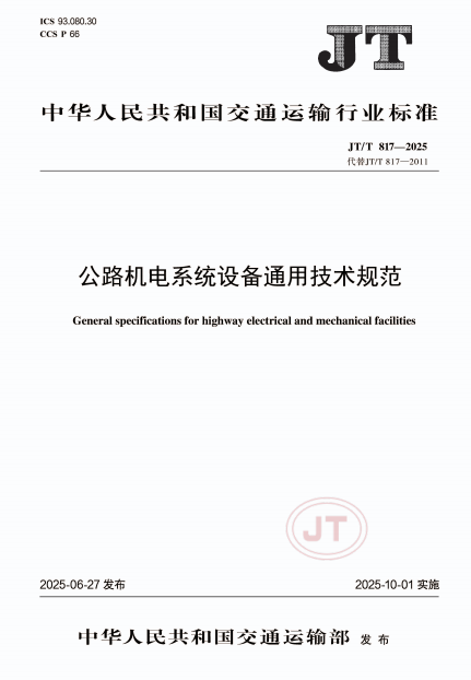 JT/T 817-2025 公路机电系统设备通用技术规范