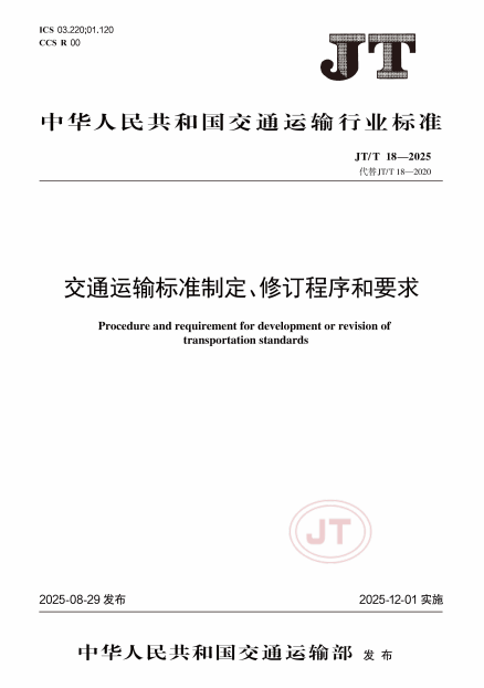 JT/T 18-2025交通运输标准制定、修订程序和要求