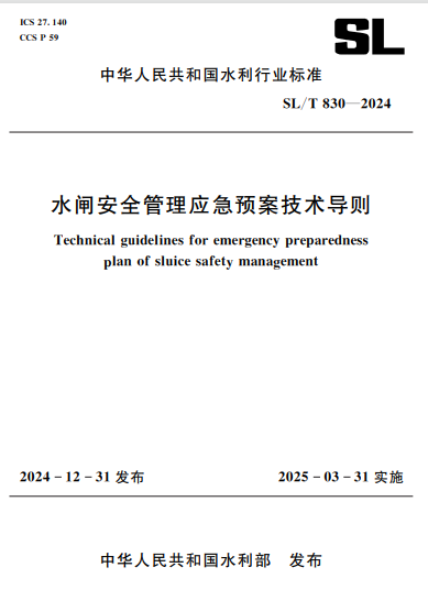 SL/T 830-2024 水闸安全管理应急预案技术导则