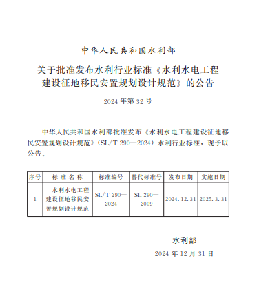 SL/T 290-2024 水利水电工程建设征地移民安置规划设计规范