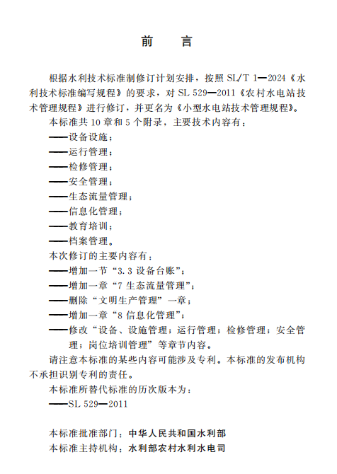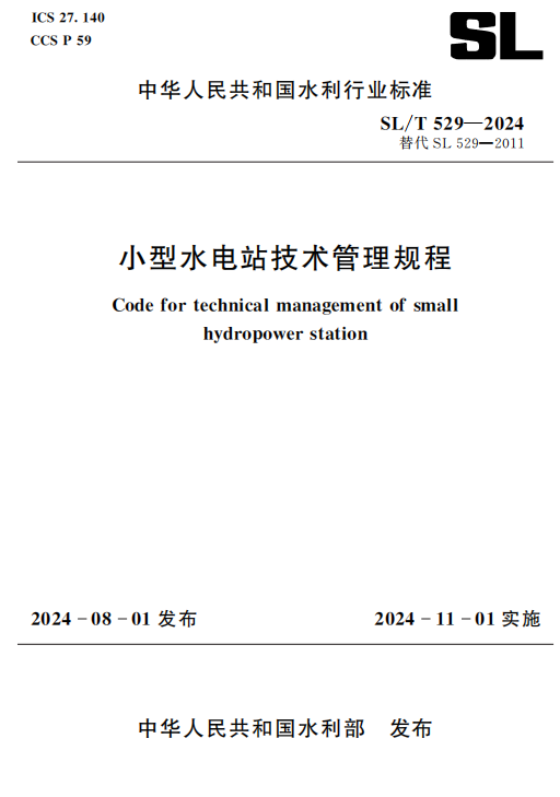 SL/T 529-2024 小型水电站技术管理规程