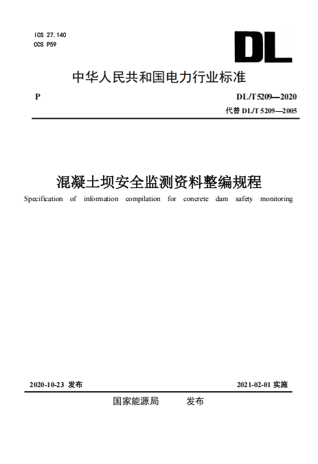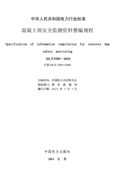 DL/T 5209-2020 混凝土坝安全监测资料整编规程