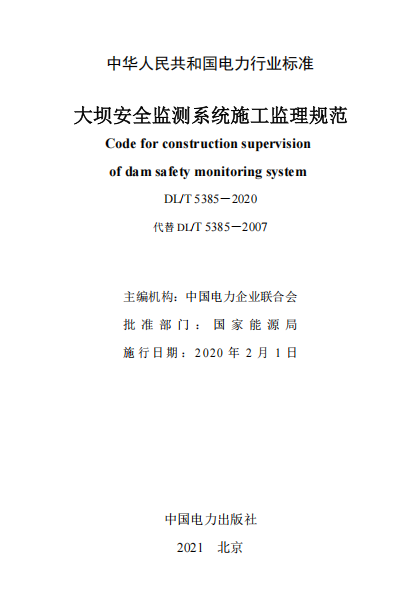 DL/T 5385-2020 大坝安全监测系统施工监理规范