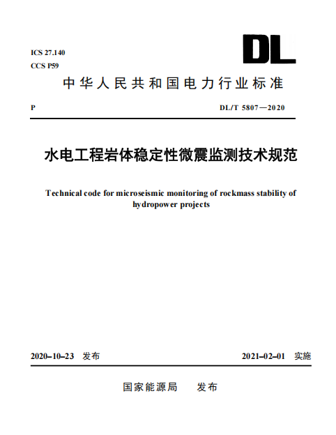 DL/T 5807-2020 水电工程岩体稳定性微震监测技术规范