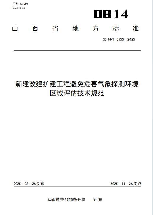 DB14/T 3555-2025 新建改建扩建工程避免危害气象探测环境区域评估技术规范