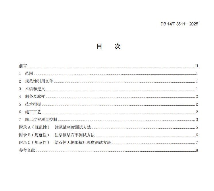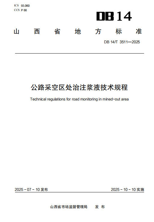 DB14/T 3511-2025 公路采空区处治注浆液技术规程