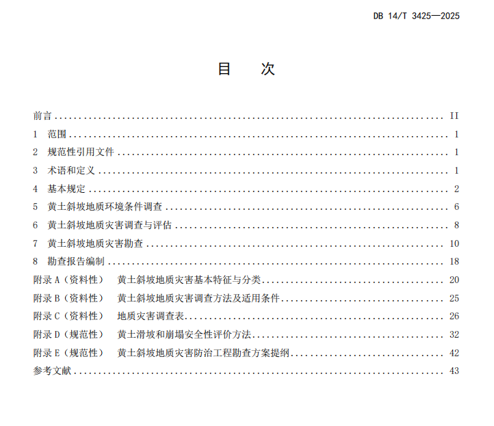 DB14/T 3425-2025 黄土斜坡地质灾害防治工程勘查规程
