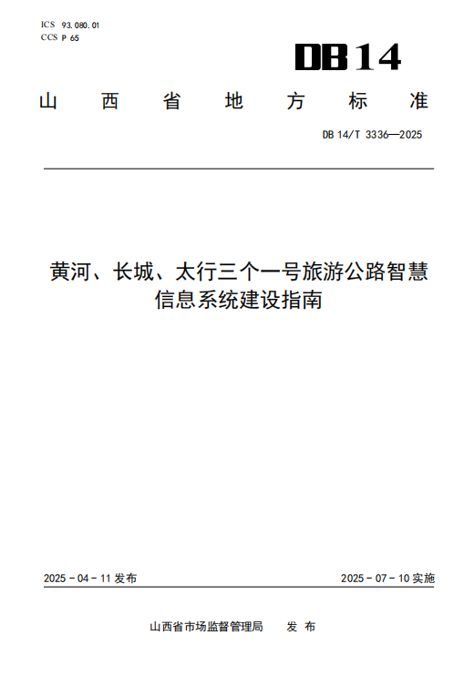 DB14/T 3336-2025 黄河、长城、太行三个一号旅游公路智慧信息系统建设指南