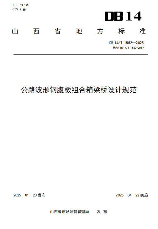 DB14/T 1552-2025 公路波形钢腹板组合箱梁桥设计规范