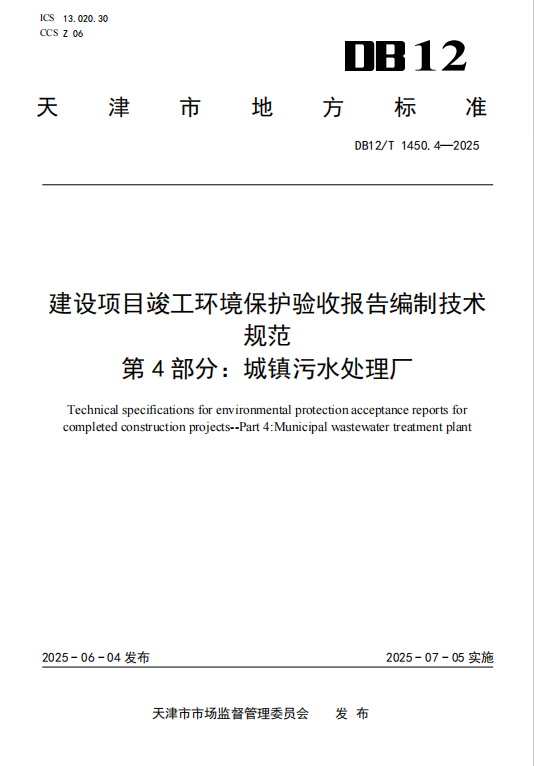 DB12/T 1450.4-2025 建设项目竣工环境保护验收报告编制技术规范 第4部分:城镇污水处理厂