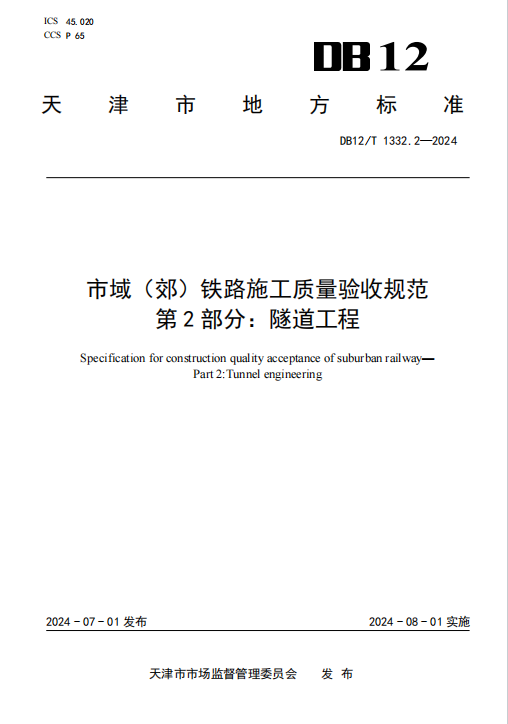 DB12/T 1332.2-2024《天津市域(郊)铁路施工质量验收规范第2部分:隧道工程》