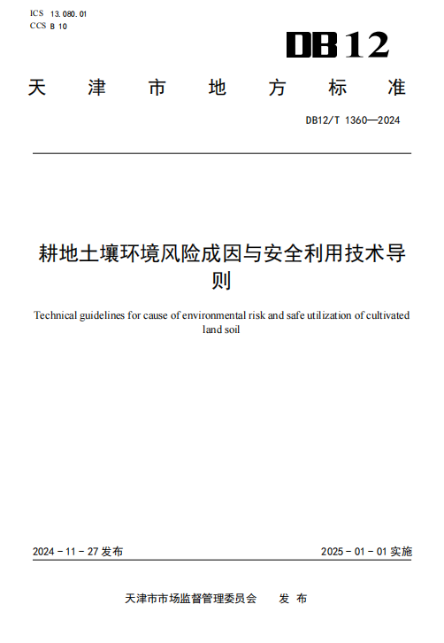 DB12/T 1360-2024《耕地土壤环境风险成因分析与安全利用技术导则》
