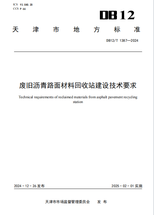 DB12/T 1387-2024《废旧沥青路面材料回收站建设技术要求》