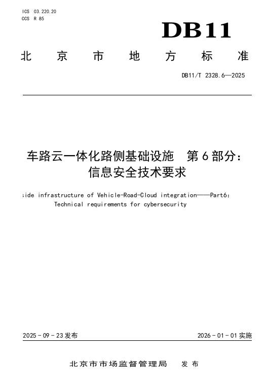 DB11/T 2328.6-2025 车路云一体化路侧基础设施 第6部分:信息安全技术要求