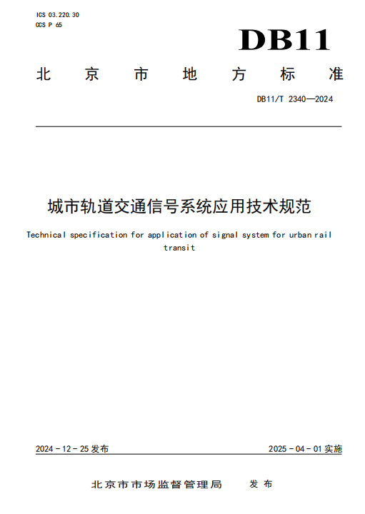DB11/T 2340-2024 城市轨道交通信号系统应用技术规范
