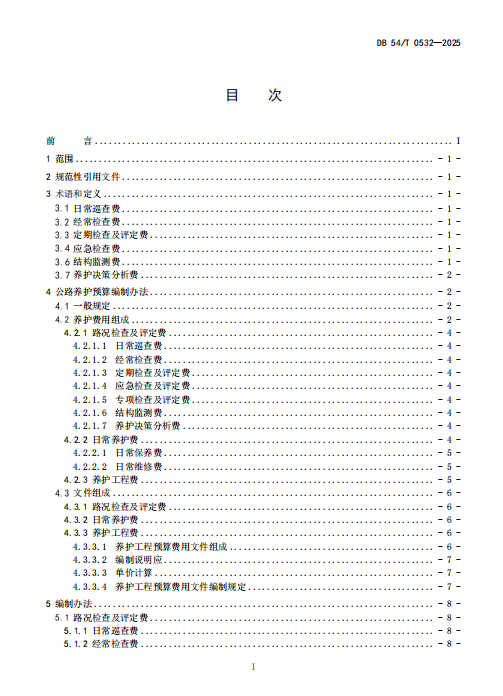 DB54/T 0532-2025 西藏自治区国省公路养护费用编制办法