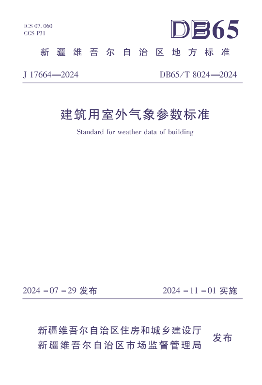 DB65/T 8024—2024 建筑用室外气象参数标准