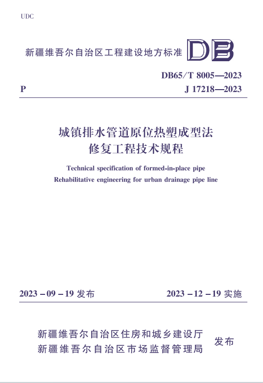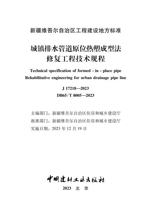 DB65/T 8005-2023 城镇排水管道原位热塑成型法修复工程技术规程