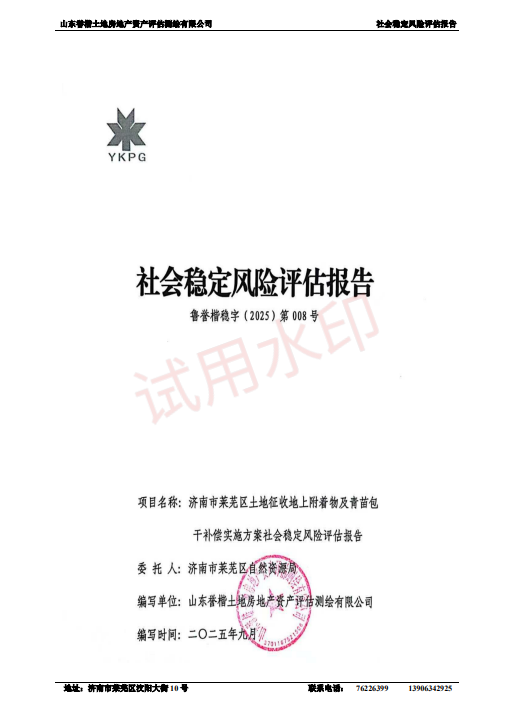 济南市莱芜区土地征收地上附着物及青苗包干补偿实施方案社会稳定风险评估报告