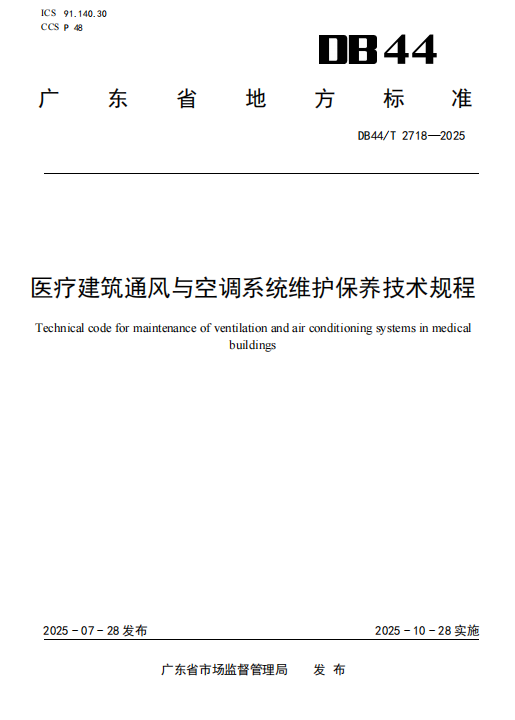 DB44/T 2718-2025 医疗建筑通风与空调系统维护保养技术规程