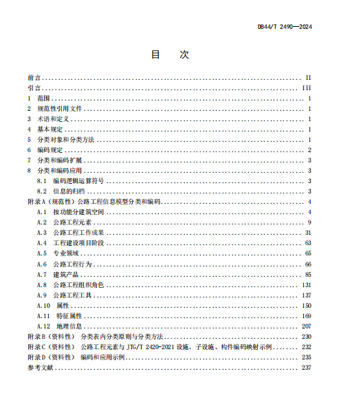 DB44/T 2490-2024 公路工程信息模型分类和编码标准