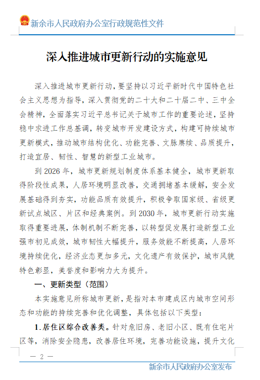新余市人民政府关于深入推进城市更新行动的实施意见