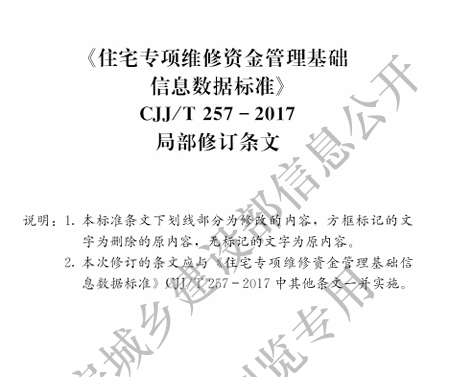住宅专项维修资金管理基础信息数据标准(局部修订)