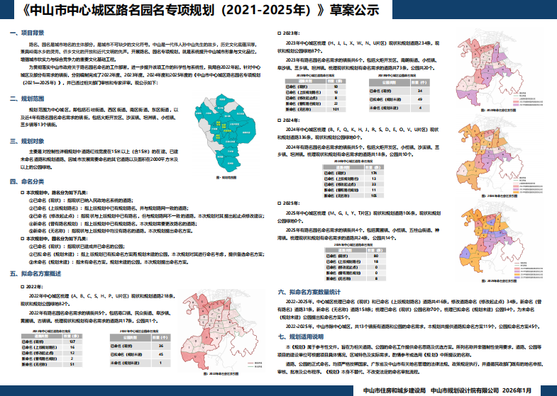 中山市中心城区路名园名专项规划(2021-2025年)》草案公示