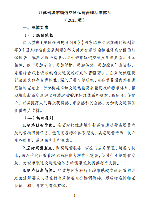 江苏省城市轨道交通运营管理标准体系(2025版)