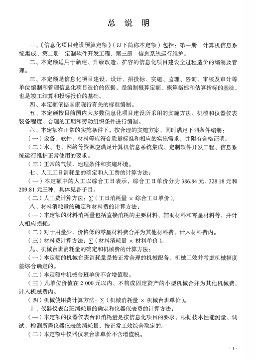 《信息化项目建设预算定额》(第一册 计算机信息系统集成)
