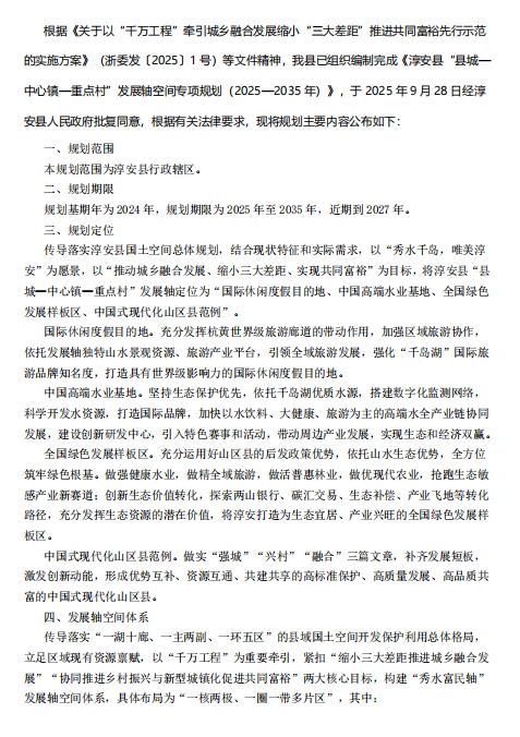 淳安县“县城—中心镇—重点村”发展轴空间专项规划(2025—2035年)