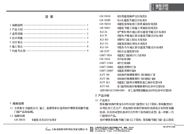 本图集专为建筑设计、施工、监理等单位选用玻纤增强聚氨酯节能门窗产品而编制。