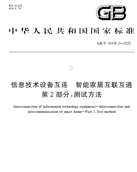 GB/T 46456.2-2025 信息技术设备互连 智能家居互联互通 第2部分:测试方法