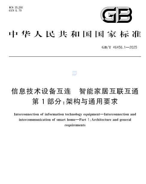 GB/T 46456.1-2025 信息技术设备互连 智能家居互联互通 第1部分:架构与通用要求