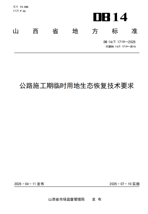DB14/T 1719-2025 公路施工期临时用地生态恢复技术要求