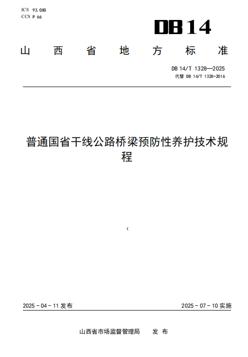 DB14/T 1328-2025 普通国省干线公路桥梁预防性养护技术规程