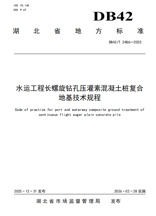 DB42/T 2486-2025 水运工程长螺旋钻孔压灌素混凝土桩复合地基技术规程