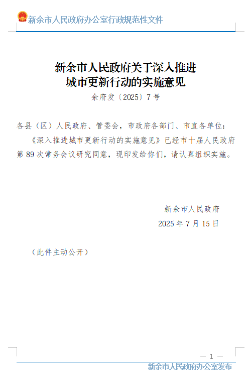 新余市人民政府关于深入推进城市更新行动的实施意见