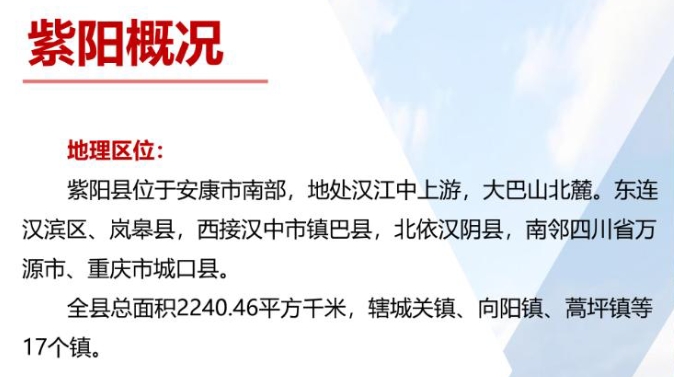 紫阳县位于陕西南端、巴山北麓、汉江上游,于明正德七年(1512年)置县,因道教南派创始人张伯端(道号“紫阳真人”)曾在此修行悟道而得名,意为“紫气东来,阳光普照”,是全国唯一以道教名号命名的县。