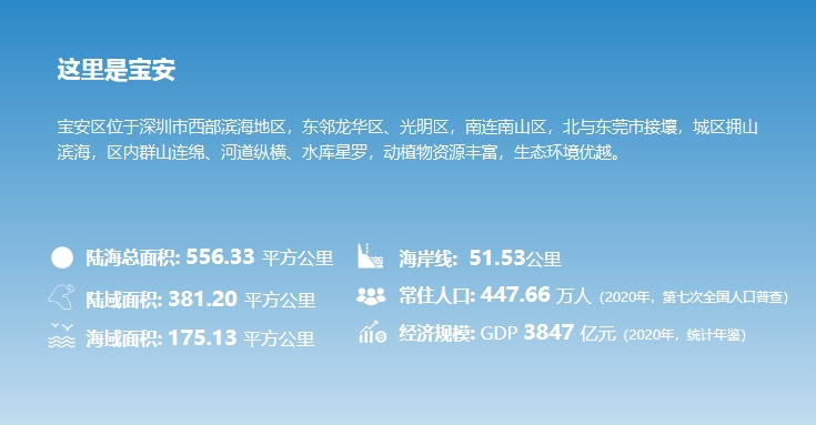宝安区,广东省深圳市辖区,位于深圳市西北部,总面积397平方千米,辖10个街道,共124个社区工作站、140个社区居委会。区人民政府驻创业一路1号。