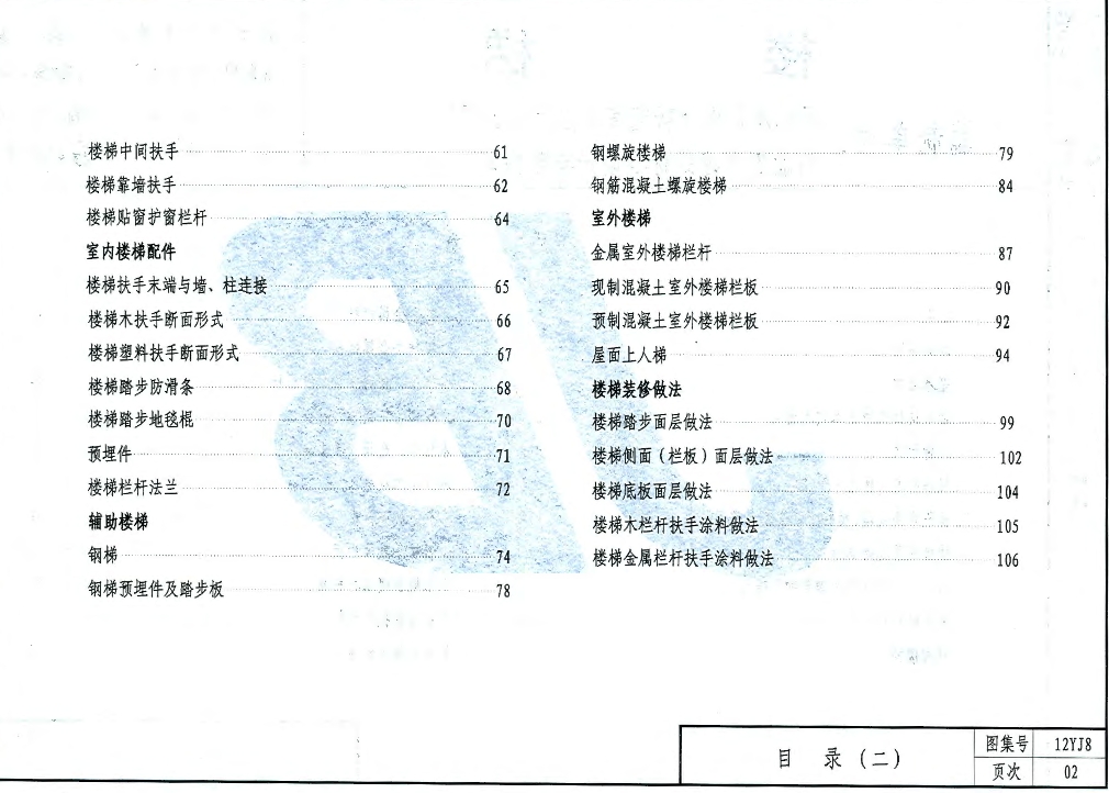 12J8楼梯主要内容包括:室内楼梯、室外楼梯、辅助楼梯和屋顶上人爬梯。
