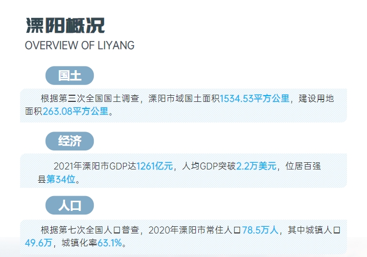 溧阳,是三省通衢处。地处苏浙皖三省交界。溧阳,是生态休闲区。溧阳土壤富硒、水质弱碱、空气优良,林木覆盖率达31.4%。溧阳,是产业特色地。