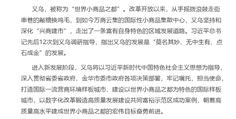 义乌市,古称乌伤,浙江省辖县级市,由金华市代管,地处浙江省中部,金衢盆地东部,属亚热带季风气候,全市辖8个街道、6个镇,总面积1105.46平方千米,常住人口188.8万人。