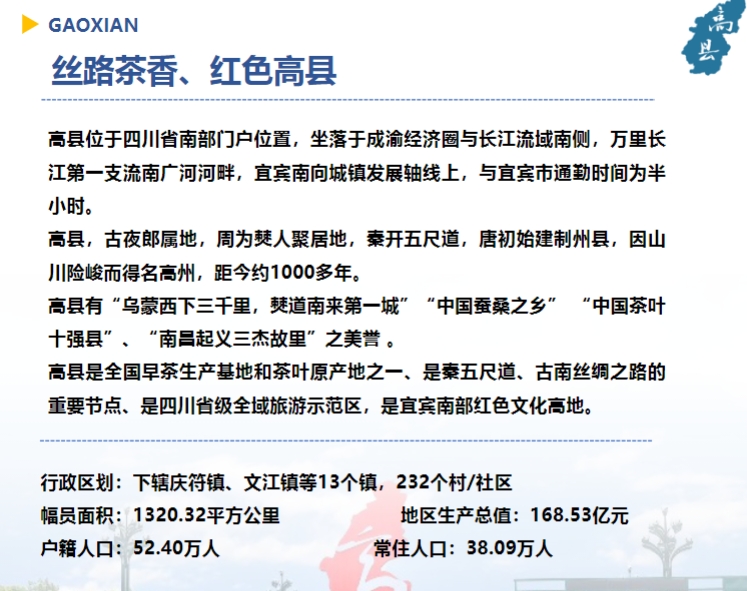 高县,隶属于四川省宜宾市,位于四川盆地南缘,总面积1323平方千米。截至2022年10月,高县辖13个镇。