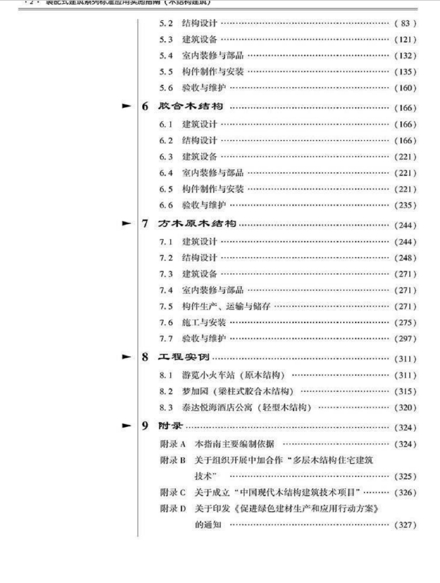 本指南以木结构建筑相关的国家标准、行业标准为主线,吸纳了地方标准和设计手册以及国外的相关技术成果,以标准的实施为重点,突出标准在执行、使用方面的技术要点和措施。