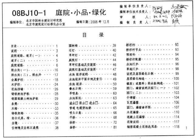 本图集是在原88J10-1基础上进行修编的,使之更适用于日益发展的庭院、小品、绿化设计的需要。本图集内容适用于庭院、居住区以及街头、小广场、小公园等设计,