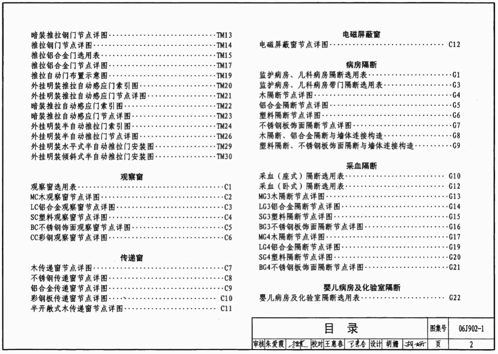 适用于全国新建、改建、扩建的医疗建筑中相关的室内用门、窗、隔断、隔墙及栏杆(板)等部位及X射线检查室机房防护设施的相关构造,供设计师选用。